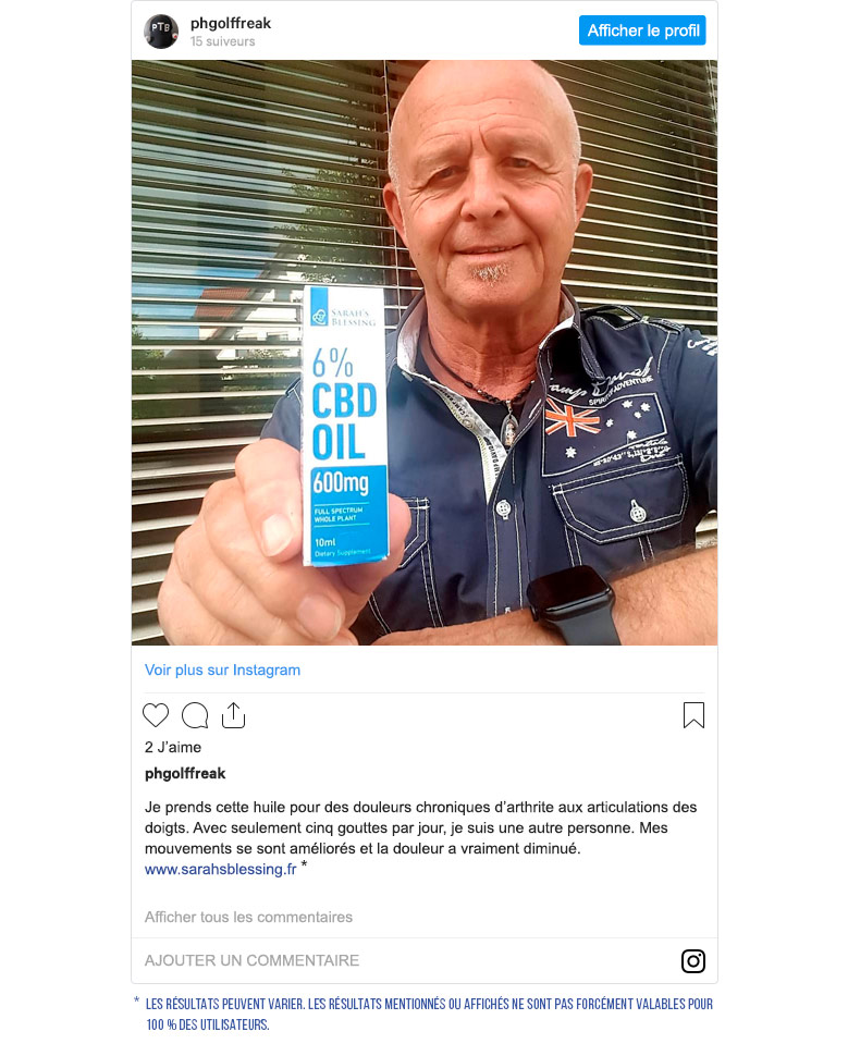Anna n’est pas la seule qui a écrit un avis positif sur l’huile de CBD de première qualité par Sarah’s Blessing. Beaucoup d’utilisateurs ont partagé leur expérience positive avec le produit sur internet et les réseaux sociaux. Voici quelques-uns de ces nombreux témoignages.